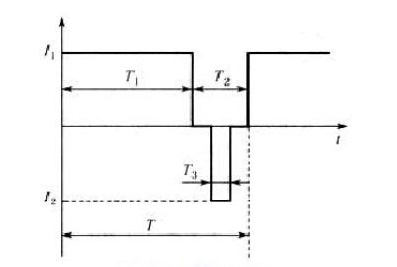 新型的直流充電樁采用快速充電法,該系統(tǒng)區(qū)別于傳統(tǒng)充電器所采用的連續(xù)電流充電和脈沖電流充電方式,采用了智能化的變脈沖充電方式,即采用下圖所示的充電電流脈沖,包括充電脈沖T1間歇脈沖T2以及放電脈沖T3。通過(guò)間歇停充,使蓄電池經(jīng)化學(xué)反應(yīng)產(chǎn)生的氧氣和氫氣有時(shí)間重新化合而被吸收掉,使下一輪的恒流充電能夠更加順利地進(jìn)行,使蓄電池可以吸收更多的電量。