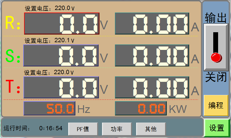 ? 電壓、頻率調(diào)節(jié)范圍寬,數(shù)字按鍵輸入,獨立顯示三相相電壓和線電壓